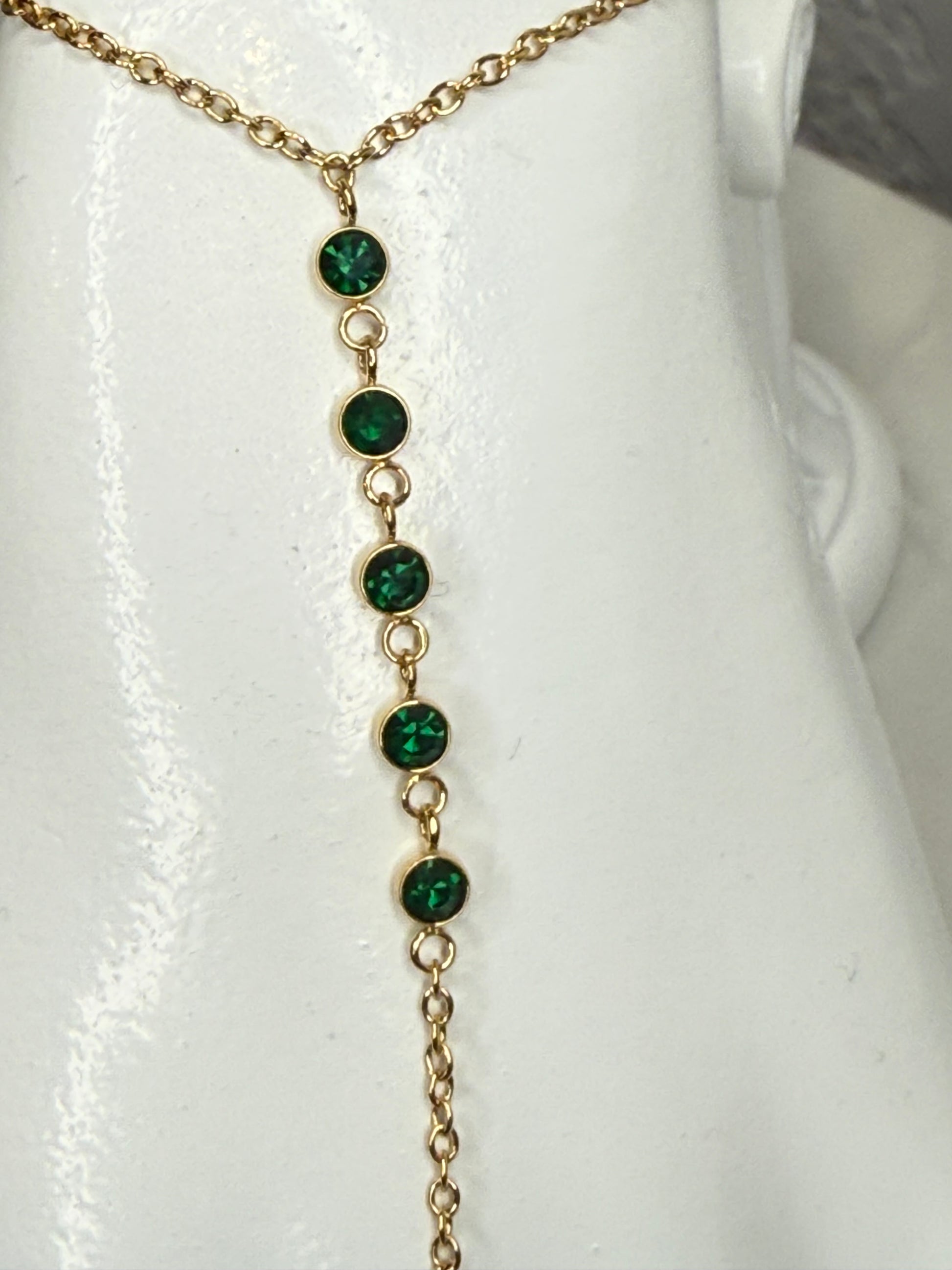 Elevate your everyday style with this elegant and unique hand chain. Crafted from durable, waterproof and non-tarnish 18k gold-plated stainless steel, it features five brilliant, emerald-colored zircons that shimmer gracefully across the back of your hand. This hypoallergenic piece combines high-end sparkle with practical, long-lasting quality, making it a comfortable and sophisticated accessory you can wear anywhere, anytime.